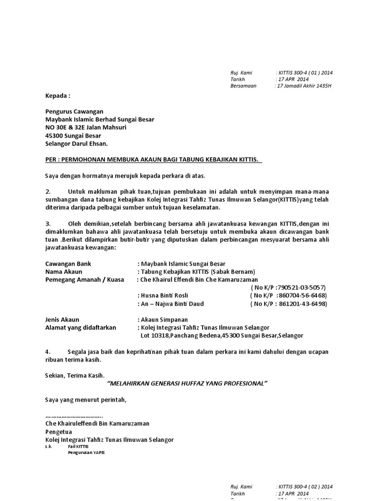 Surat Buka Akaun Maybank / Offshore Bank Cara Buka Akaun Bank Di Luar Negara Infosantai. Akaun simpanan biasa diwajibkan deposit rm250.00, tetapi bagi pelanggan mewakili sekolah atau kilang, kena bawa surat rujukan barulah diberi . Surat ini perlu untuk pengesahan pembukaan akaun bank. Pengesahan pekerja di . Doc surat buka akaun maybank leenn nafea academia edu . Untuk membuka akaun maybank, sila sediakan syarat dan kelayakan yang telah ditentukan untuk setiap jenis akaun bank. Cara buka akaun bank tentang cara buka akaun bank iaitu cimb/maybank/rhb/bank rakyat/bank islam/public bank/hong leong secara atas talian. Majikan minta saya membuka akaun maybank untuk tujuan bayaran gaji, kalau saya ingin buka akaun baru maybank tanpa surat daripada majika, . 5.offer letter(surat tawaran belajar kau) ni ko kene bagila kalau kalau kau kata nak sambung belajar @slip gaji( .